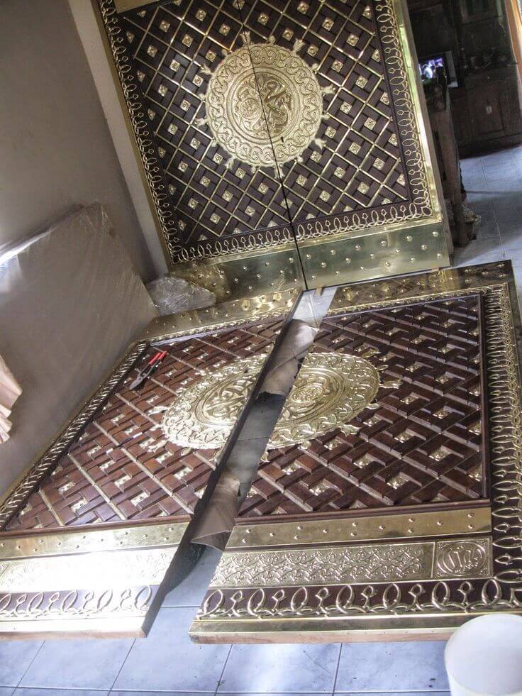 Pintu Nabawi Tembaga Kuningan dari Luthfilogam adalah pintu berbahan tembaga dan kuningan yang dirancang dengan desain elegan dan bernilai seni tinggi. Terinspirasi oleh keindahan dan kemegahan Pintu Nabawi di Madinah, produk ini menggabungkan kualitas material terbaik dengan ukiran-ukiran yang penuh detail, menciptakan kombinasi antara keindahan, kekuatan, dan keabadian. Pintu ini sering digunakan untuk memperindah masjid, rumah ibadah, dan bangunan berkelas tinggi, memberikan kesan mewah dan sakral. Luthfilogam dikenal sebagai produsen yang mengutamakan kualitas dan ketelitian dalam setiap proses pembuatan, menghasilkan karya yang memukau dan bertahan lama.